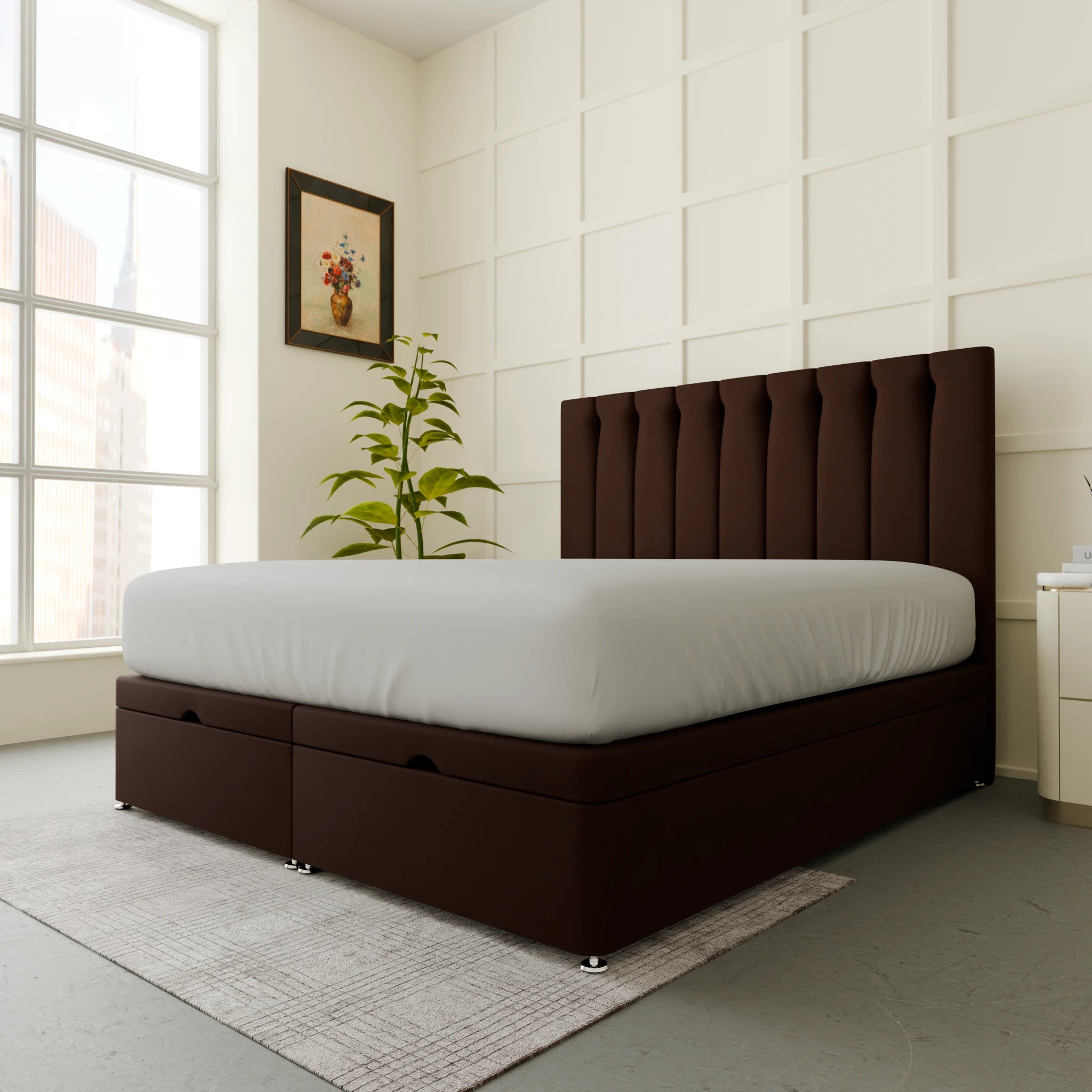 Our Abu Dhabi Ottoman Bed comes with a choice of headboard sizes, ranging from a simple and elegant style to a more elaborate and statement-making design. The standard headboard size for Abu Dhabi Ottoman Bed is 26” and you can upgrade it to a 54” Floor standing headboard.