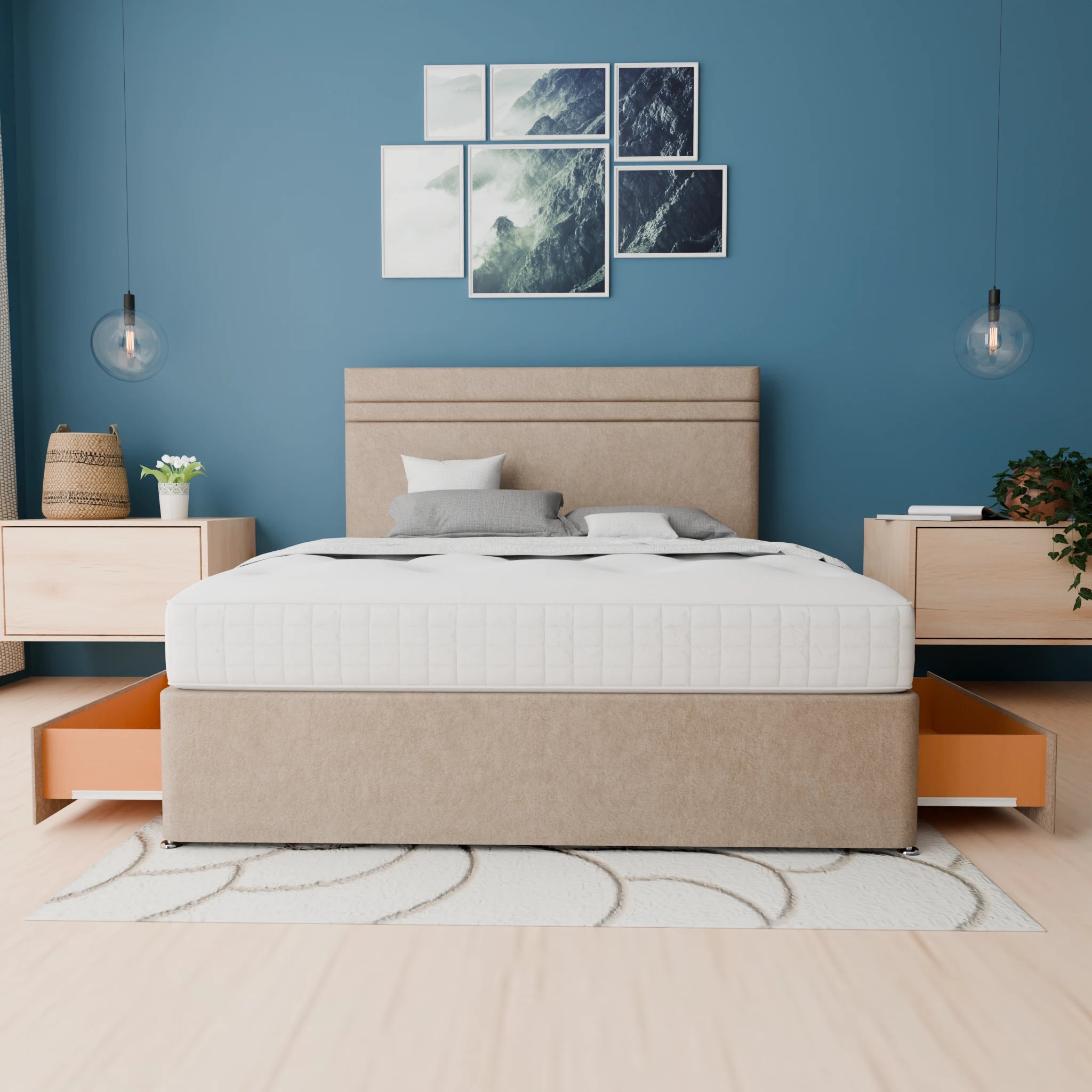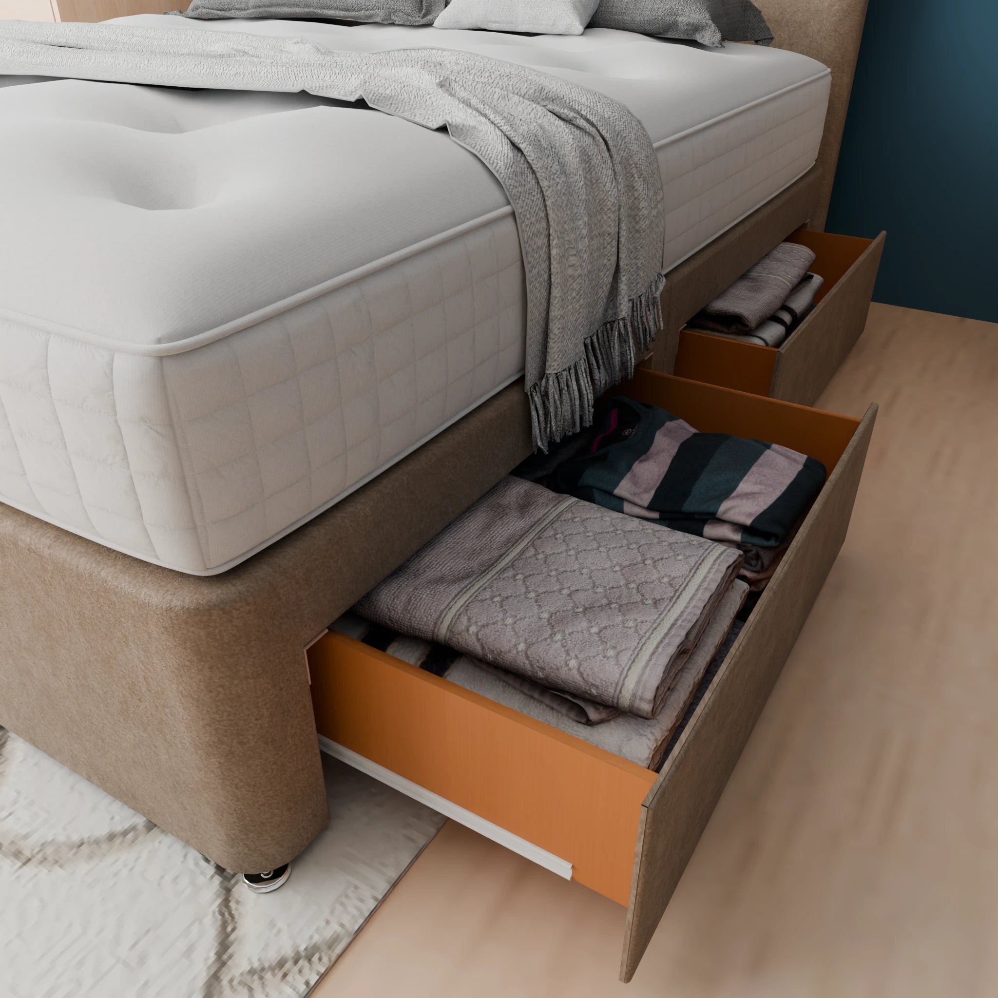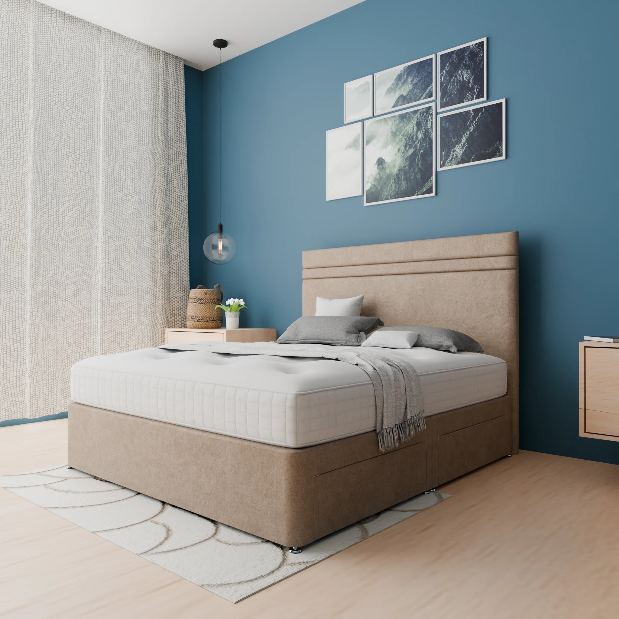 The base of our Divan Beds is constructed from high-quality materials to provide maximum support and durability. You can either choose a standard base or a reinforced base.