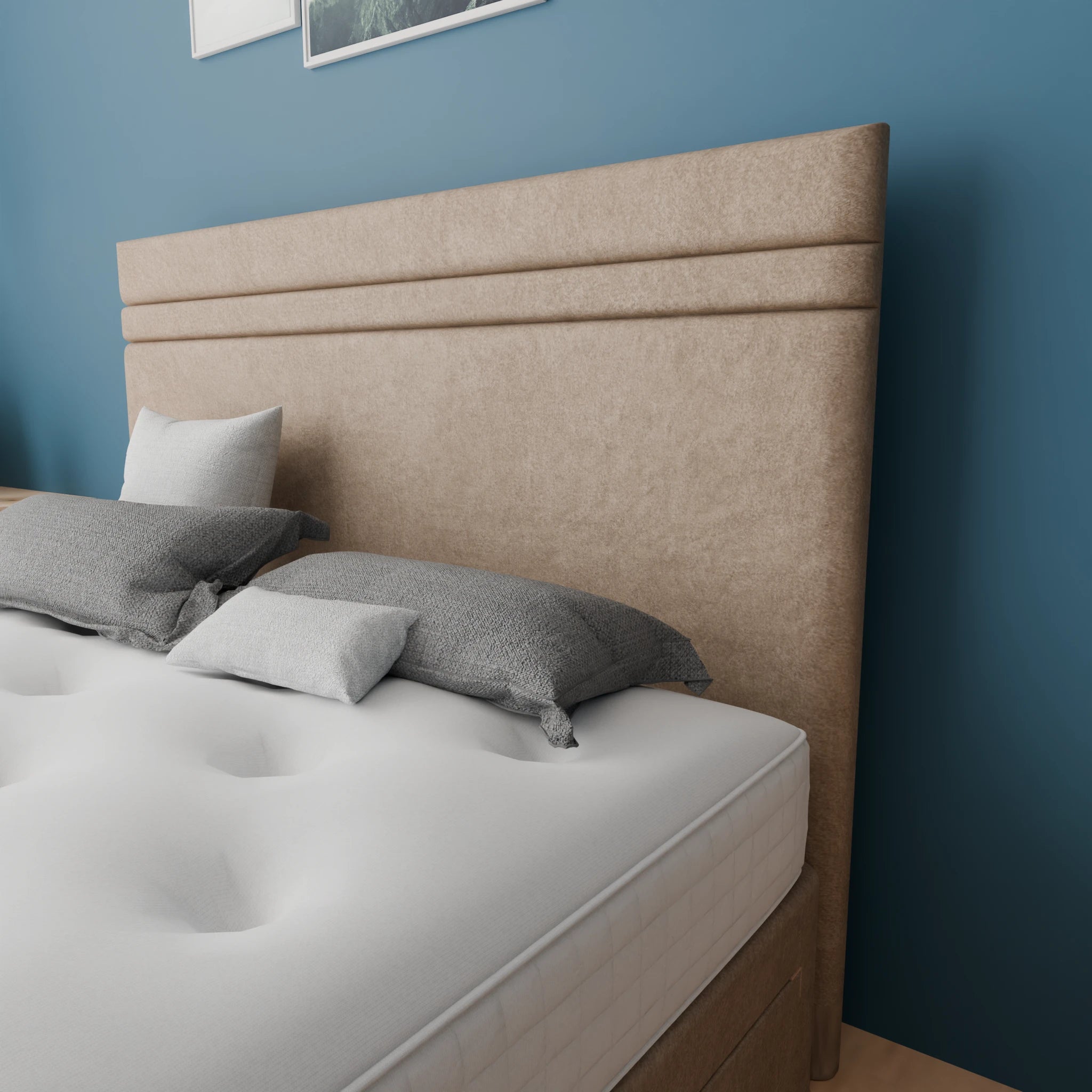 Our Ankara Divan Bed comes with a choice of headboard sizes, ranging from a simple and elegant style to a more elaborate and statement-making design. The standard headboard size for the Ankara Divan Bed is 26” and you can upgrade it to a 54” Floor-standing headboard.