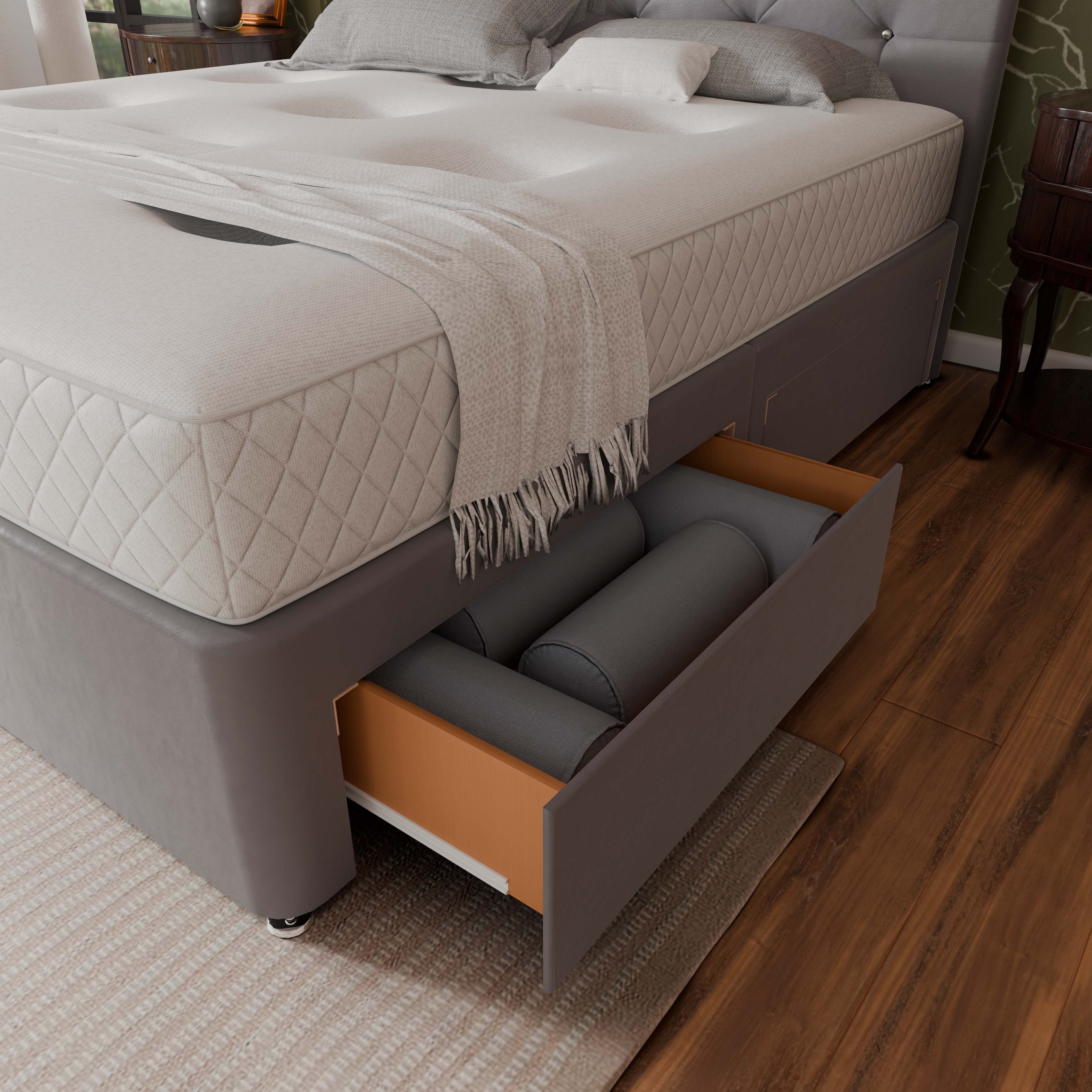 The base of our Divan Beds is constructed from high-quality materials to provide maximum support and durability. You can either choose a standard base or a reinforced base.