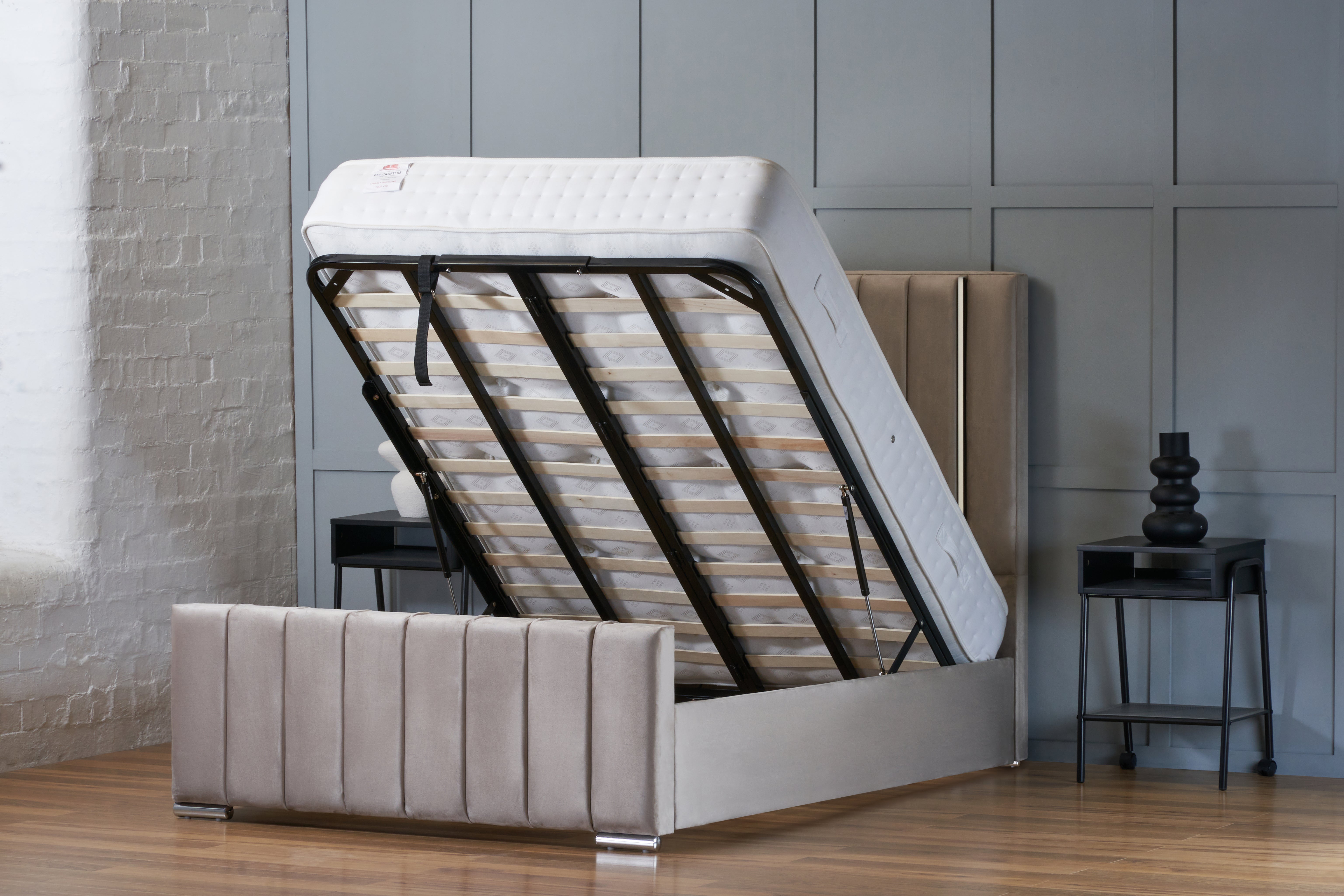 Choose from three base options: Slats, Solid Base Board, or Ottoman Gas Lift. The Ottoman Gas Lift option provides integrated storage beneath the frame, turning under-bed space into practical storage while preserving a clean, uncluttered appearance. This makes Baton Rouge a versatile choice among storage beds and other bedroom furniture solutions.