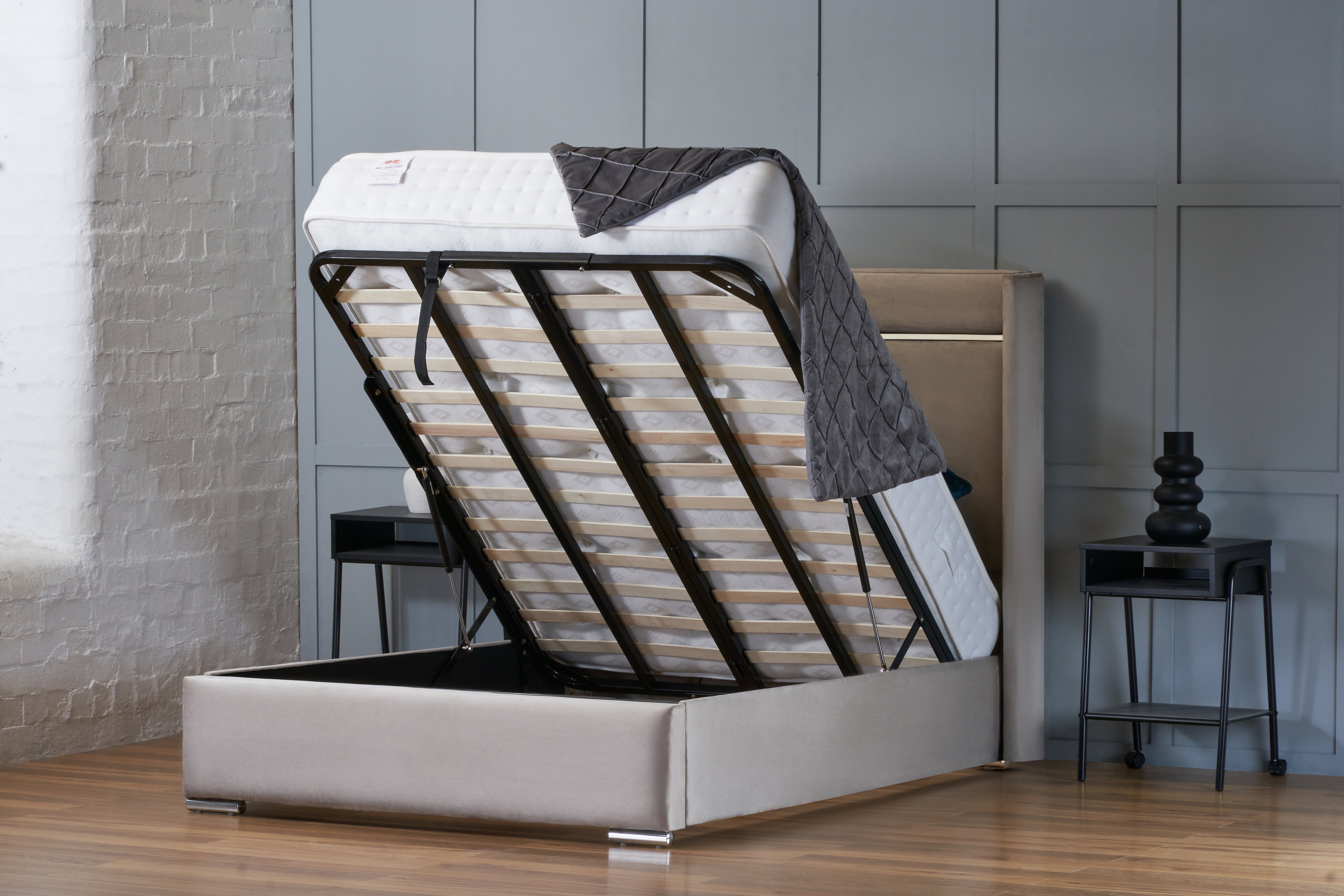 The Bradford offers a versatile selection of base types: Slats for a lightweight, breathable platform; Solid Base Board for a robust, streamlined finish; or Ottoman Gas Lift for elegant storage solutions without compromising room aesthetics. This makes the bed frame not only a statement piece but also a practical addition to the modern bedroom.