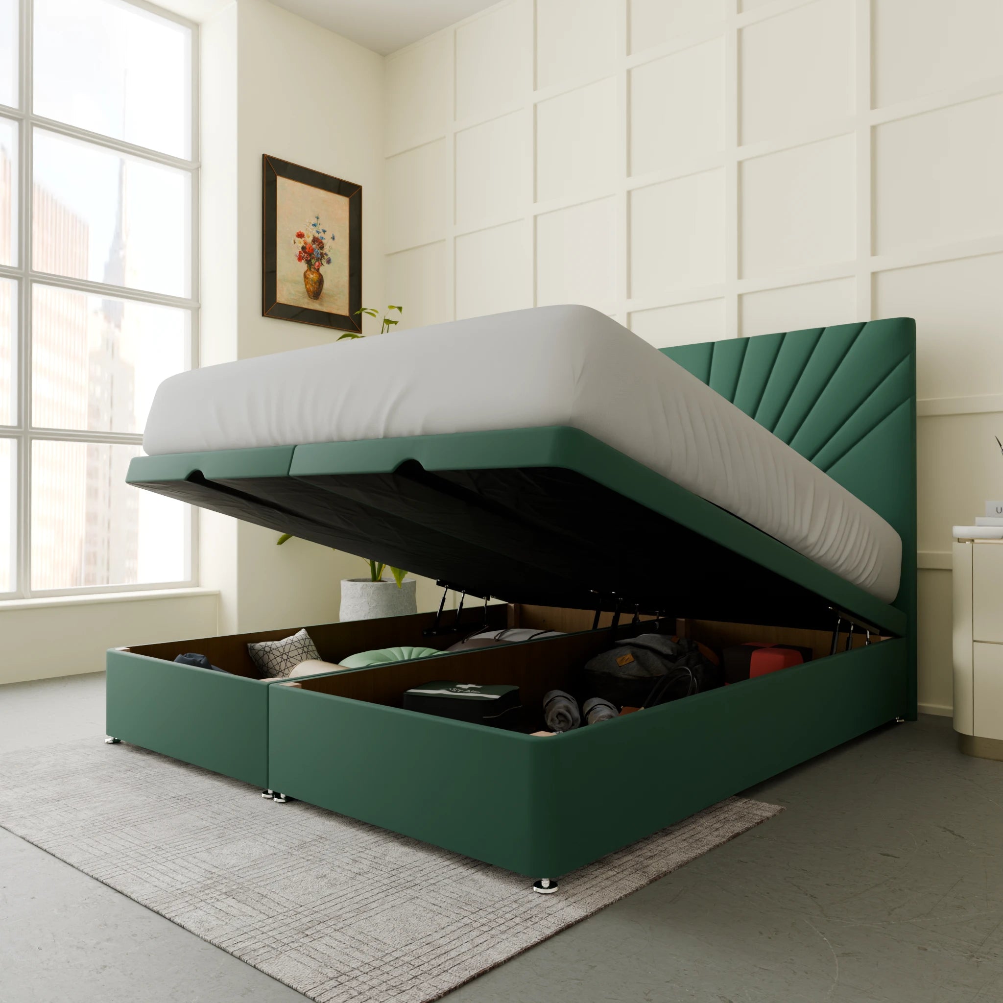 The Marigot Ottoman Bed Frame stands as a testament to exquisite design and unparalleled functionality, a masterpiece crafted to transform your bedroom into a sanctuary of style and serenity. At Bed Crafters, we pride ourselves on offering luxury beds that harmonise superior aesthetics with enduring comfort, and the Marigot is a prime example of our commitment to British-made excellence. Each frame is meticulously constructed, showcasing expert craftsmanship and an unwavering attention to detail, promising not just a bed, but a centrepiece for your personal retreat.