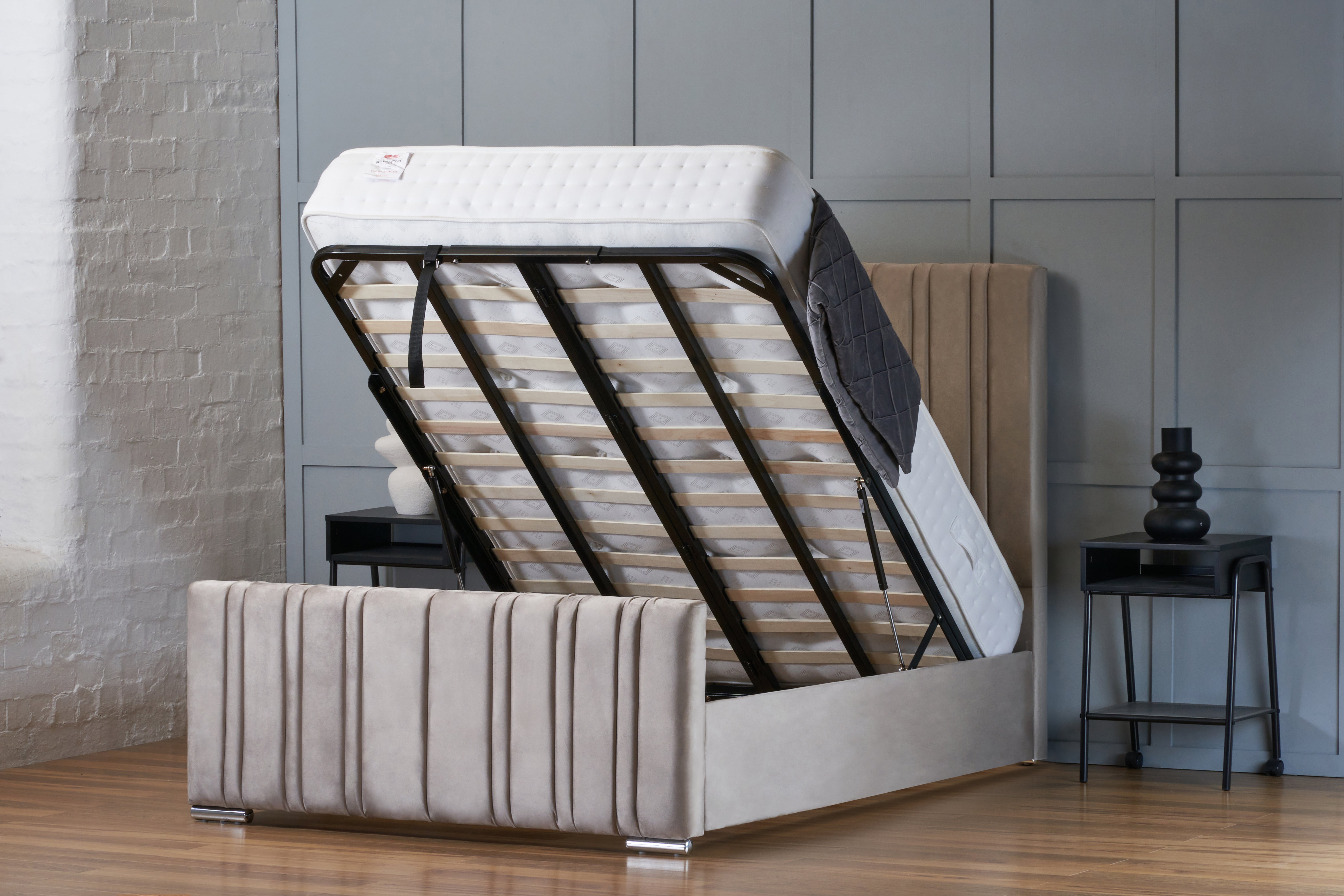 Size and base flexibility come together in five measurements: Single 3FT, Small Double 4FT, Double 4FT6, King 5FT, and Super King 6FT. Base options include Slats, a Solid Base Board, or Ottoman Gas Lift, a storage-enabled choice that adds practical space to your room. The Ottoman Gas Lift option embodies the essence of ottoman beds and storage beds in one elegant solution, delivering quiet support beneath a stylish frame.