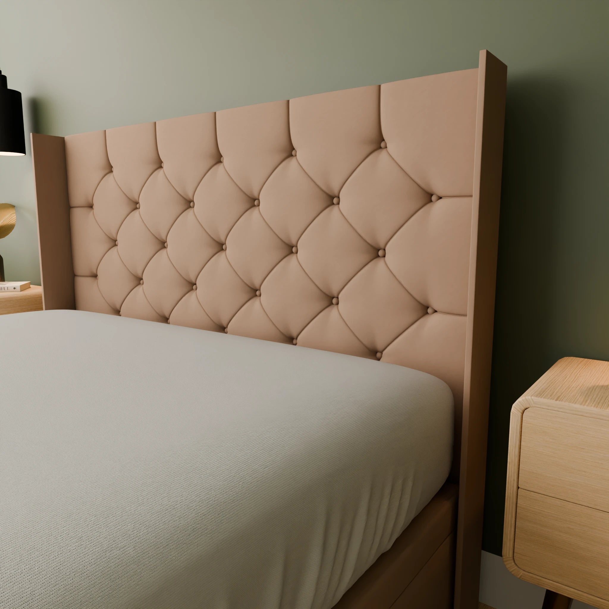 From Bed Crafters, a UK bed retailer you can trust, the Sanaa Wingback is a handcrafted bed that combines enduring construction with contemporary luxury. The frame provides supportive structure, while the winged headboard adds drama and comfort. Choose from a curated range of premium upholstery fabrics and colours to suit your room: Naples Collection, Marble Collection, Lenoso, Teddy Boucle, Dumfries, Plush, Chenille, Coniston, and Crush. Whether you adore warm neutrals or bold jewel tones, the options are rich yet refined.